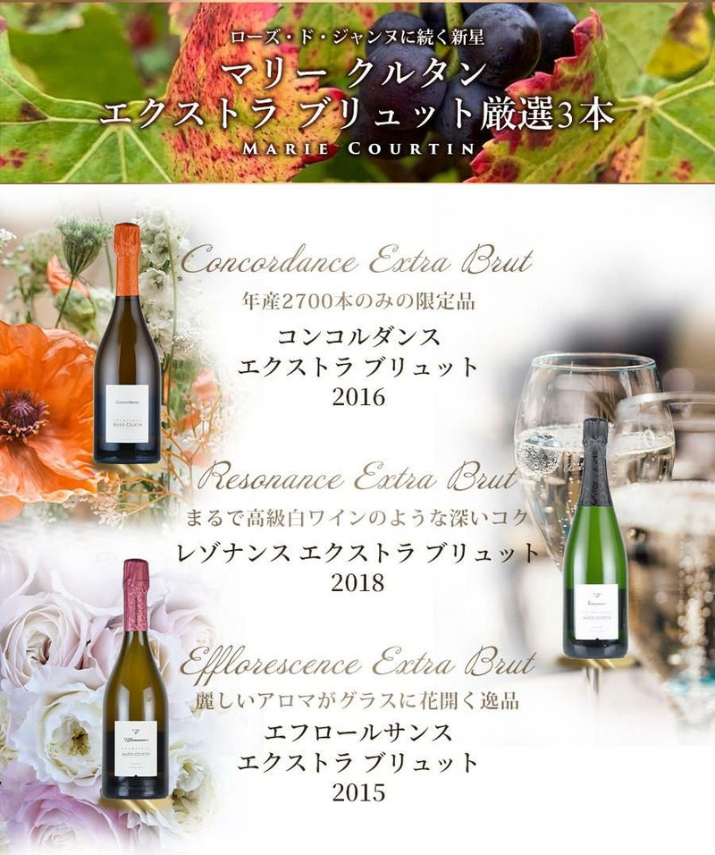 ワインセット Champagne シャンパン Extra Brut エクストラ ブリュット Marie Courtin《マリー クルタン》 厳選3本 福袋 送料無料