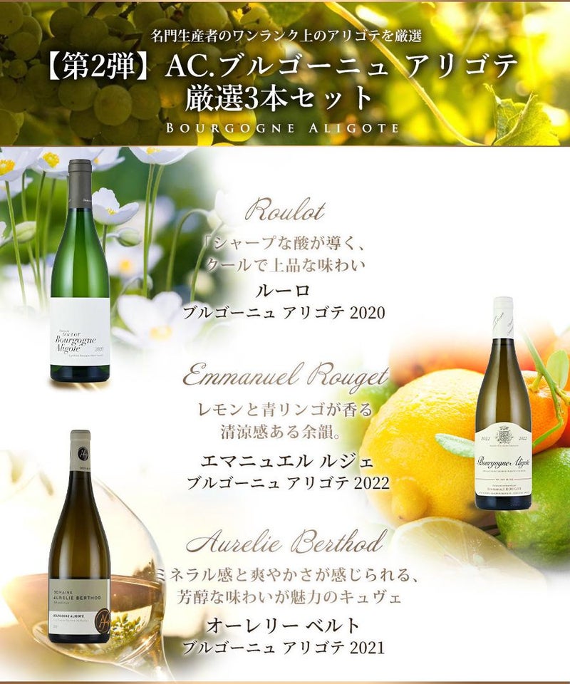 【第2弾】ワインセット Burgundy ブルゴーニュ 白ワイン 超優良生産者のACアリゴテ 厳選3本 福袋 送料無料