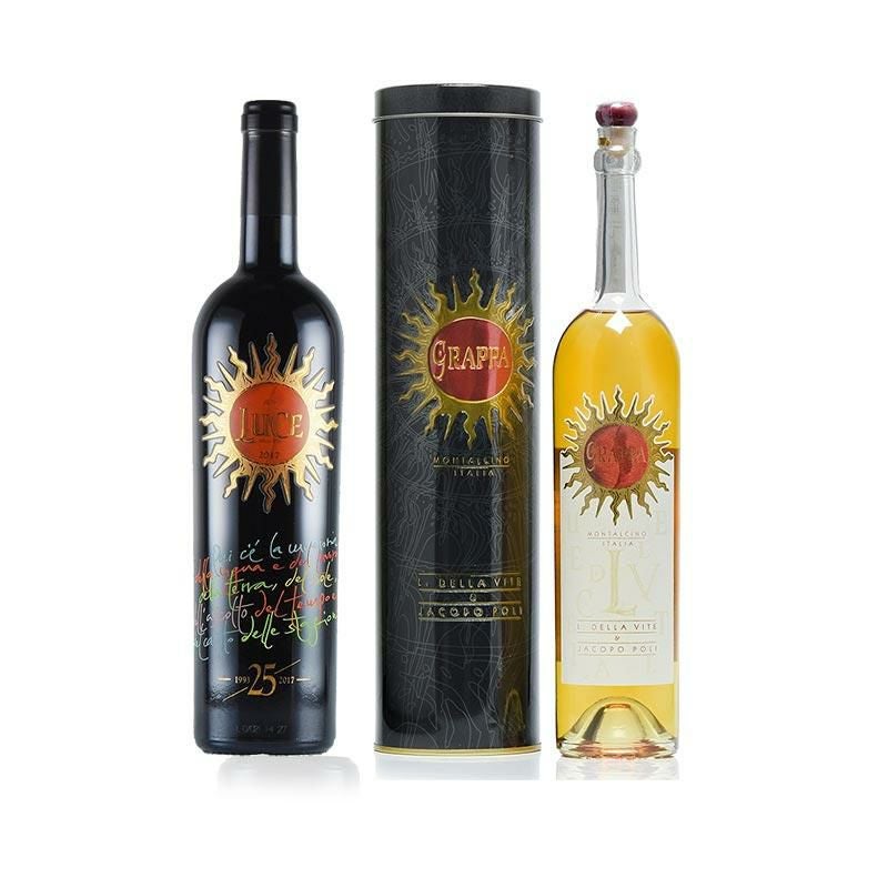 二人の天才によって生み出された偉大なスーパータスカン「ルーチェ」の特別な25周年記念ボトルとルーチェの個性を表現した上質な蒸留酒「グラッパ」。ルーチェの真髄をご堪能いただける2本セットです。