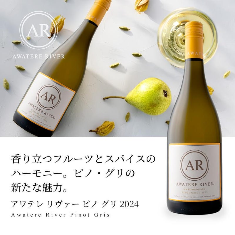 アワテレ リヴァー ピノ グリ 2024 ニュージーランド・マールボロ地方の厳選された畑で育まれたピノ・グリ2024は、白桃、洋ナシの花にカルダモンの香りが広がり、ライチとメロンの風味が調和しています。口当たりは豊かで柔らかく、ジューシーで豊かな果実味が広がり、清らかな余韻へと続きます。 沖積砂利とシルトロームの豊かな土壌で育てられたブドウを低温発酵し、澱熟成によって質感を高めています。アルコール度数13%、軽やかながら深みのある味わいは、アジア料理やグリルした白身魚、フルーツサラダとの相性が抜群です。