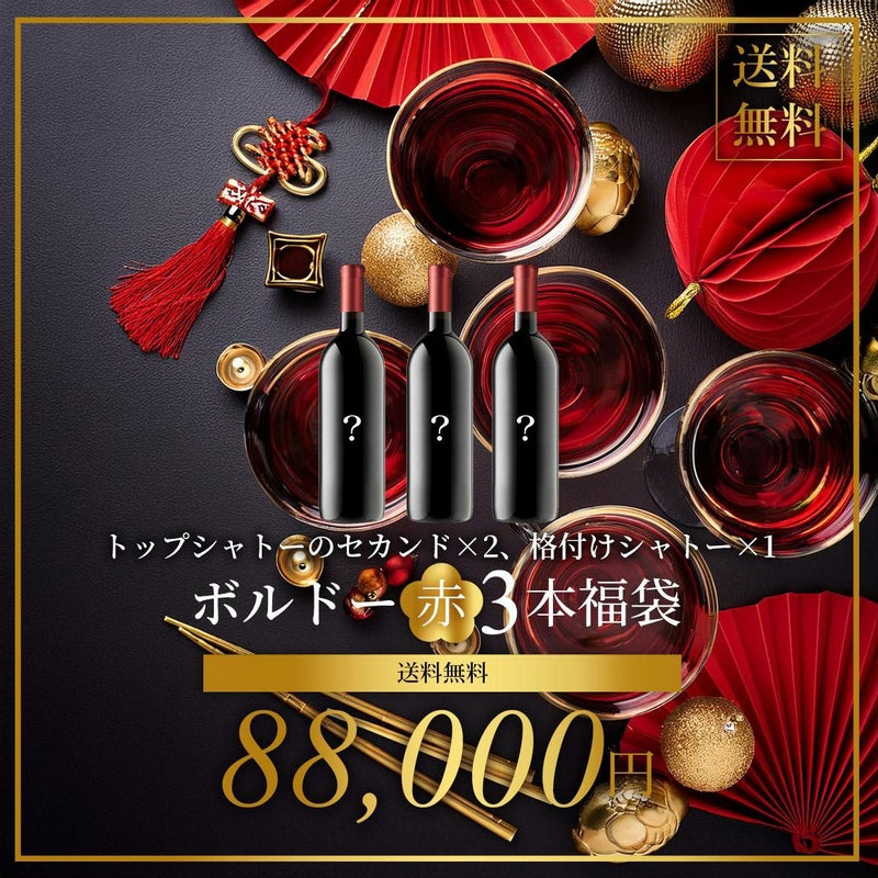 ワイン福袋★ラッキーワインセット★トップシャトーの銘品&格付けシャトー!逸品ボルドー3本セット【送料無料】【8.8万円】