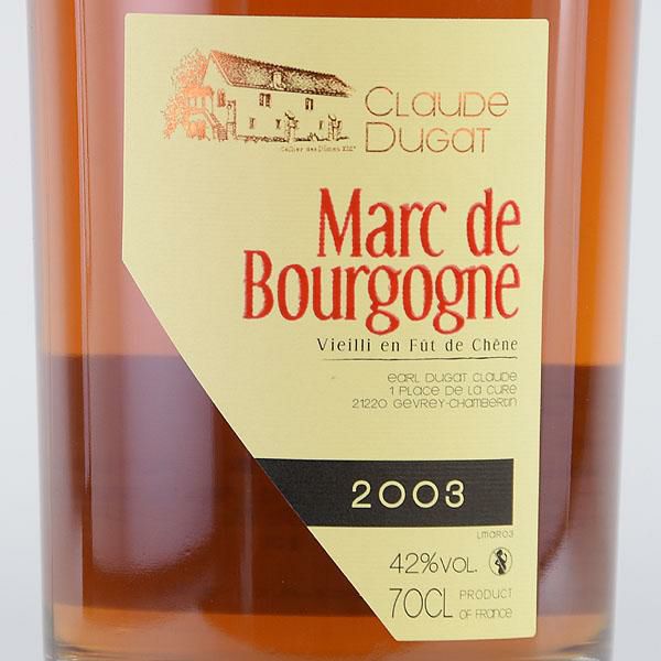 クロード デュガ マール ド ブルゴーニュ 2003 700ml 正規品 Claude Dugat Marc de Bourgogne フランス ブルゴーニュ ブランデー 製菓用