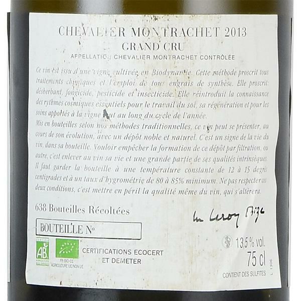 ドーヴネ シュヴァリエ モンラッシェ グラン クリュ 2013 キャップシール不良 dAuvenay Chevalier Montrachet フランス ブルゴーニュ 白ワイン