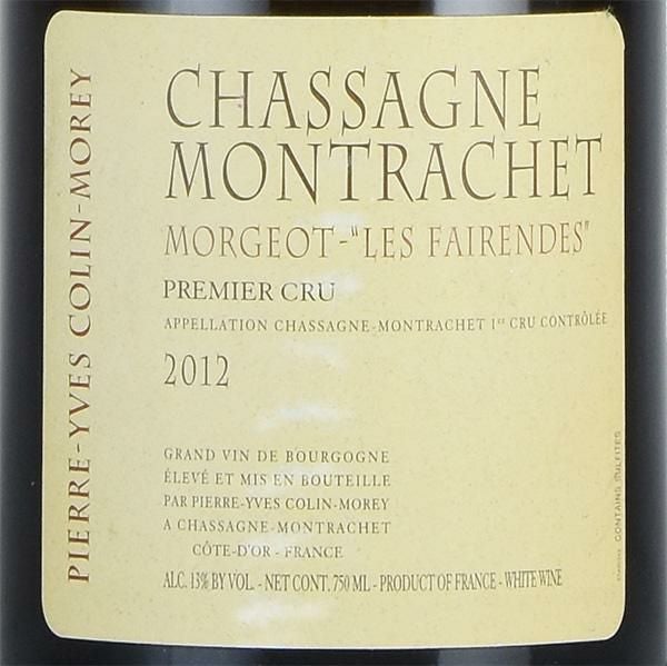 ピエール イヴ コラン モレ シャサーニュ モンラッシェ プルミエ クリュ モルジョ レ フェランド 2012 ラベル不良 Pierre Yves Colin Morey Chassagne Montrachet Morgeot Les Fairendes フランス ブルゴーニュ 白ワイン
