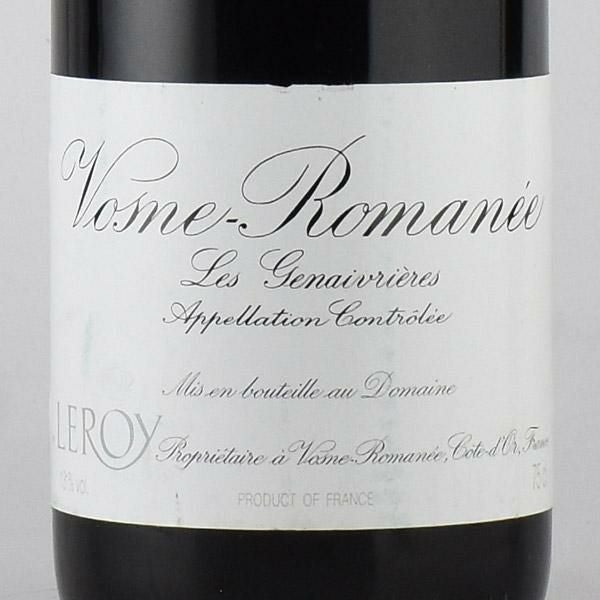 ルロワ ドメーヌ ルロワ ヴォーヌ ロマネ レ ジュヌヴリエール 1999 ヴォーヌロマネ Domaine Leroy Vosne Romanee Les Genaivrieres フランス ブルゴーニュ 赤ワイン