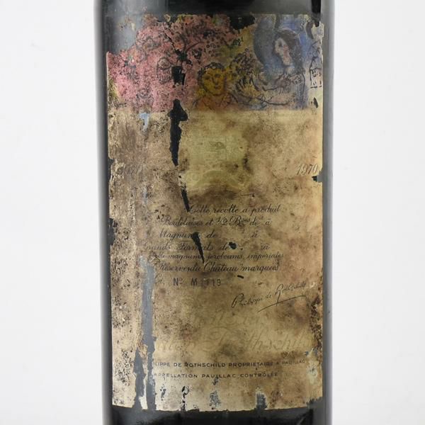 マルク・シャガール作のデザインラベル。丁度良いコクと素晴らしいバランスの味わい。シルクのようになめらかな表情をもつ後味とヴィンテージにふさわしい素晴らしい余韻。 まさに一流のムートン。