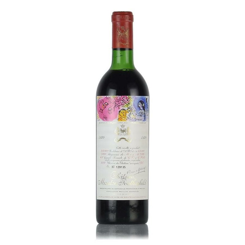 マルク・シャガール作のデザインラベル。丁度良いコクと素晴らしいバランスの味わい。シルクのようになめらかな表情をもつ後味とヴィンテージにふさわしい素晴らしい余韻。 まさに一流のムートン。