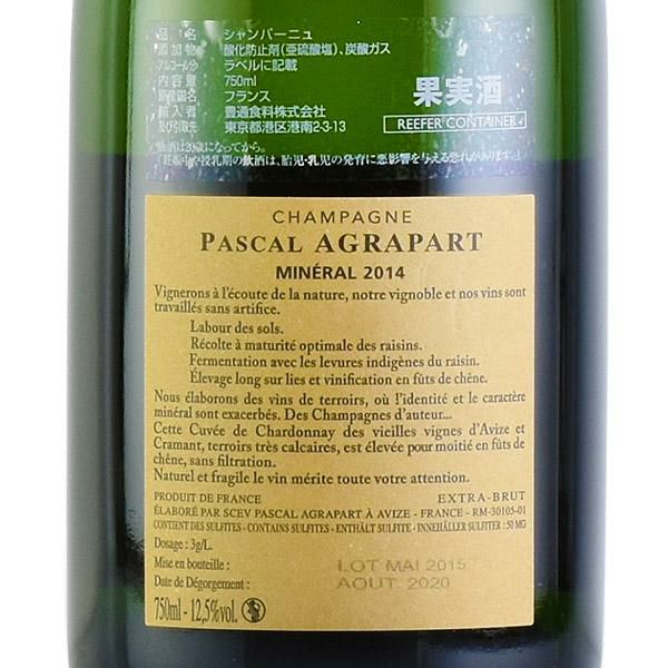 フランスのル・ギド・デ・メイユール・ヴァン・ド・フランスでは、セロス、エグリ・ウーリエと並んで3つ星に輝いています。アンセルム・セロスがシャンパーニュ造りを革新した革命児とすれば、パスカル・アグラパールはコート・デ・ブラン地区の多様な畑を基礎に、テロワール表現の多彩なキュヴェを生産する方向に進んだ職人です。品質の高さは変わりません。生産量は10万本です。