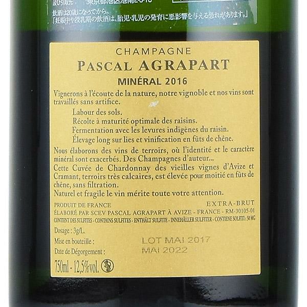 アグラパール ブラン ド ブラン ミネラル エクストラ ブリュット 2016 正規品 ブランドブラン Agrapart Blanc de Blancs Mineral Extra Brut フランス シャンパン シャンパーニュ
