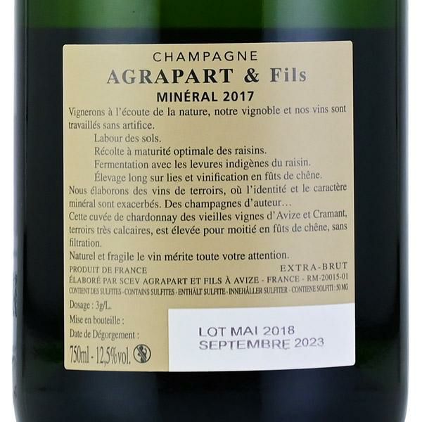 フランスのル・ギド・デ・メイユール・ヴァン・ド・フランスでは、セロス、エグリ・ウーリエと並んで3つ星に輝いています。アンセルム・セロスがシャンパーニュ造りを革新した革命児とすれば、パスカル・アグラパールはコート・デ・ブラン地区の多様な畑を基礎に、テロワール表現の多彩なキュヴェを生産する方向に進んだ職人です。品質の高さは変わりません。生産量は10万本です。