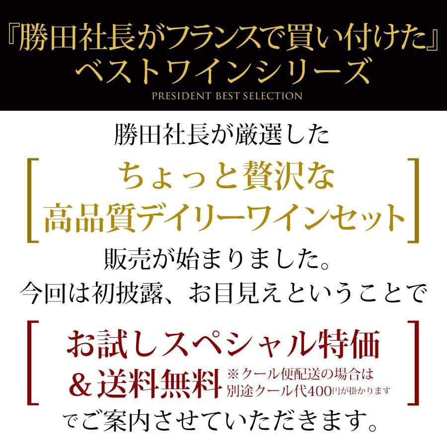 勝田社長がフランスで買い付けた「ちょっと贅沢な高品質デイリーシャンパン・セット」販売が始まりました。今回は初披露、お目見えということで更にお試しスペシャル特価&送料無料で販売させていただきます!