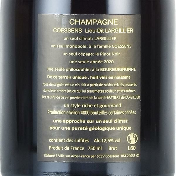 コエッセン ラルジリエ ロゼ ド セニエ 2020 コサンス Coessens Largillier Rose de Saignee フランス シャンパン シャンパーニュ
