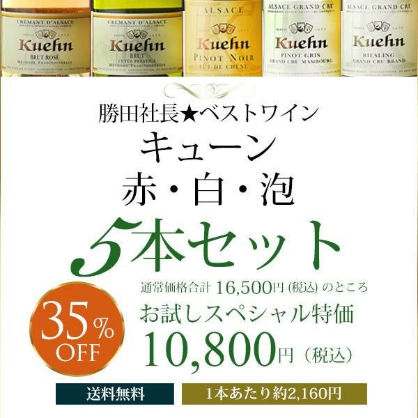 他の画像を見る 勝田社長★ベストアルザス キューン ☆ 5本セット ワインセット デイリーワイン クーン お試しスペシャル特価 送料無料 通常販売価格(税込) ¥ 16,500 税込 会員メンバー価格(税込) ¥ 10,800 税込 送料無料 クール便対応可能 在庫切れ 詳細を見る お気に入りに追加