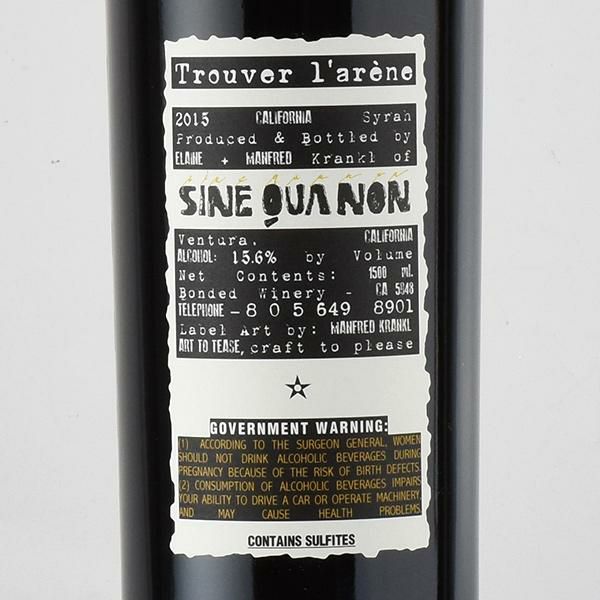 シン クア ノン トルヴェ ラレーヌ シラー 2015 マグナム 1500ml シネ クア ノン シンクアノン シネクアノン Sine Qua Non Trouver LArene Syrah アメリカ カリフォルニア 赤ワイン