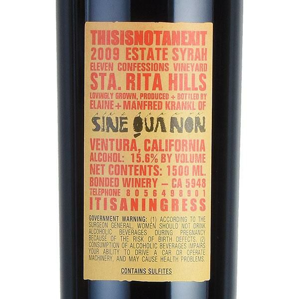 シン クア ノン ディス イズ ノット アン イグジット シラー 2009 マグナム 1500ml シネ クア ノン シンクアノン シネクアノン Sine Qua Non This Is Not An Exit Syrah アメリカ カリフォルニア 赤ワイン