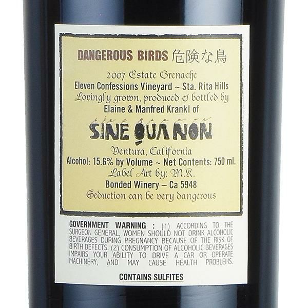 シン クア ノン デンジャラス バーズ グルナッシュ 2007 シネ クア ノン シンクアノン シネクアノン Sine Qua Non Dangerous Birds Grenache アメリカ カリフォルニア 赤ワイン