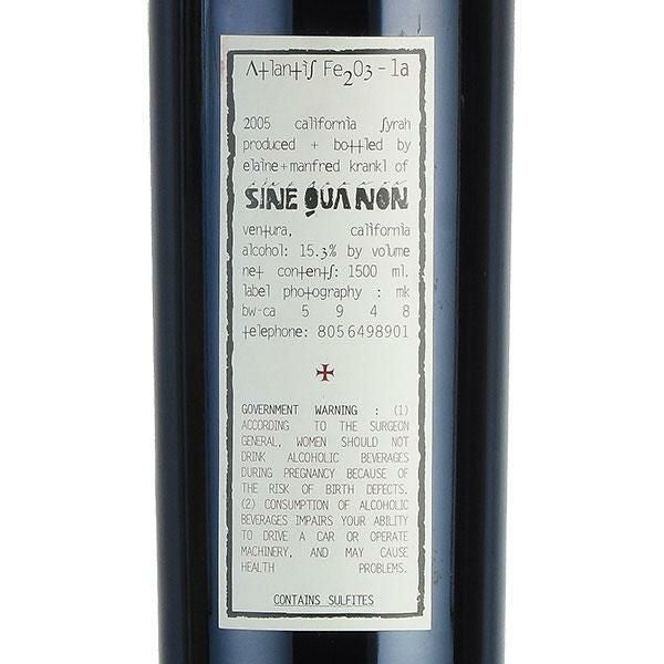 シン クア ノン アトランティス Fe2O3 1a シラー 2005 マグナム 1500ml キャップシール不良 シネ クア ノン シンクアノン シネクアノン Sine Qua Non Atlantis Fe2O3 1a Syrah アメリカ カリフォルニア 赤ワイン