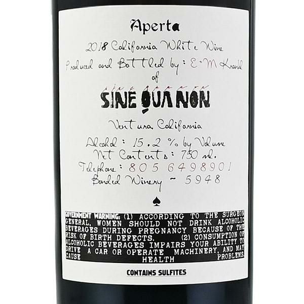 シン クア ノン アペルタ ホワイト 2018 シネ クア ノン シンクアノン シネクアノン Sine Qua Non Aperta White アメリカ カリフォルニア 白ワイン