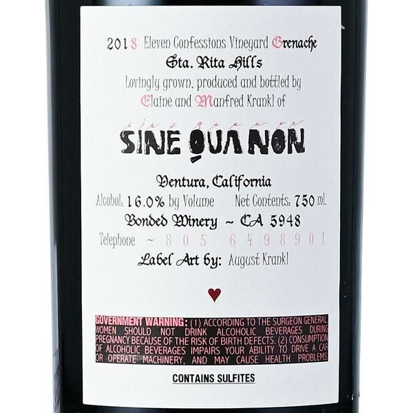 シン クア ノン イレブン コンフェッションズ グルナッシュ 2018 シネ クア ノン シンクアノン シネクアノン Sine Qua Non Eleven Confessions Grenache アメリカ カリフォルニア 赤ワイン 新入荷