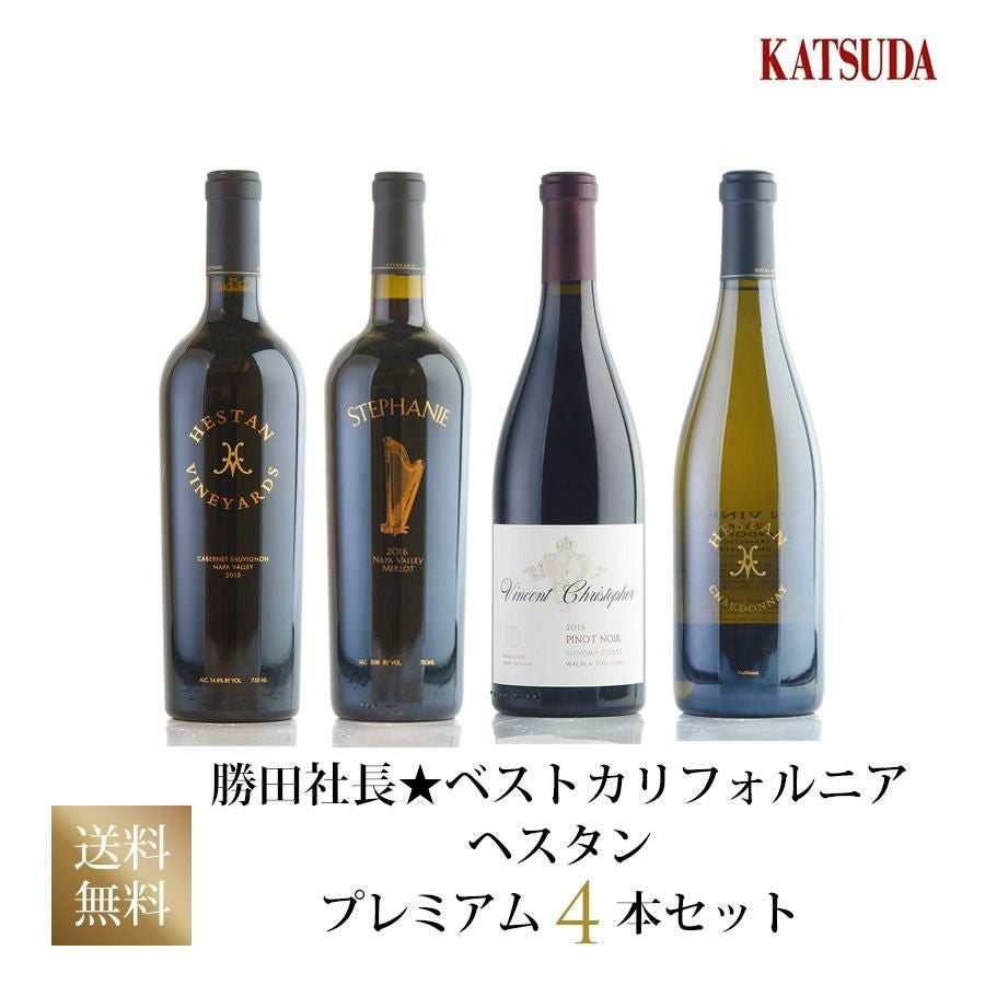 勝田社長★ベスト カリフォルニア ヘスタン ☆ プレミアム4本セット (CS・M・P・C) 生産者蔵出し ワインセット お試しスペシャル特価 送料無料