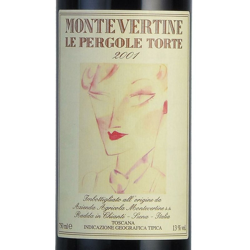 This is the first vintage made entirely by Martino Manetti. The 2001 Le Pergole Torte comes from a low-yielding vintage. On April 16, 2001, freezing temperatures blanketed the vineyards, and some 40% of the fruit was lost. This wine shows increased richness and concentration, with black fruit layers of dried cherry and blackberry preserves, spice, tar and licorice. The wine sports a strong mineral signature with graphite and dusty flint. During our conversation following this tasting, we remarked on the chiaroscuro appeal of this wine. It shows depth, texture and marked contrasts just like a Renaissance landscape painting. The wine reflects the tannic backbone you get in the 1999 vintage with the small berry concentration you get in 2000. To my palate, the astringency is on the bitter side, and I went down a few points in my final score as a result. The label artist Alberto Manfredi died in 2001.