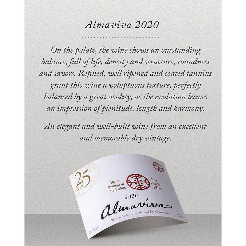 2020年はジェームス・サックリング98点評価を獲得しており、アルマヴィーヴァ誕生から25周年を祝う特別ラベルでのリリースとなっています。