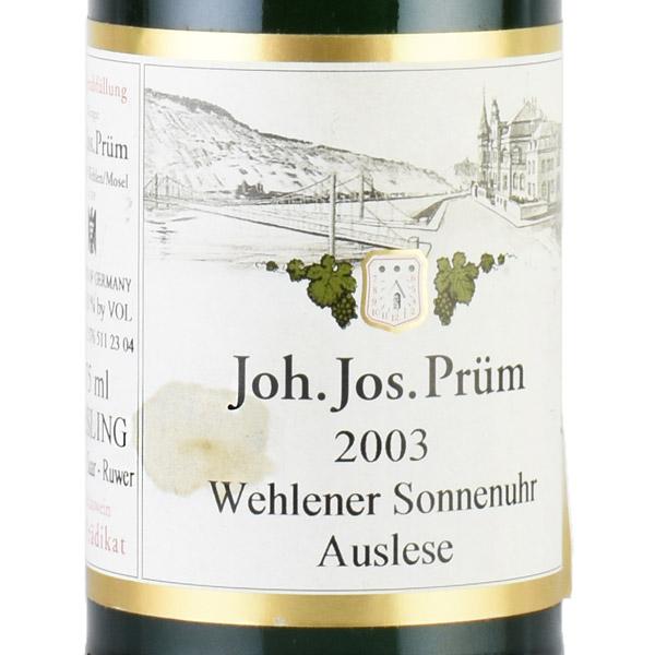 ヨハン ヨゼフ プリュム ヴェレナー ゾンネンウーア リースリング アウスレーゼ 2003 ハーフ 375ml ラベル不良 Joh Jos Prum J.J.Prum Wehlener Sonnenuhr Riesling Auslese ドイツ 白ワイン