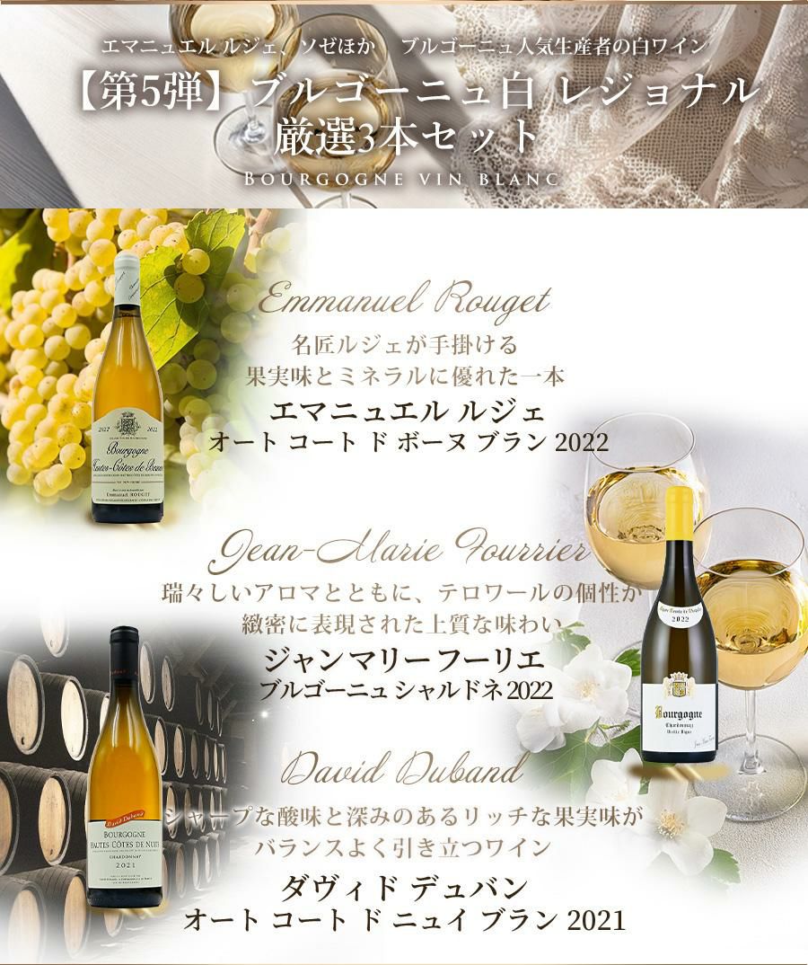 他の画像を見る 【第2弾】ワインセット Burgundy ブルゴーニュ 白ワイン 超優良生産者のACアリゴテ 厳選3本 福袋 送料無料 通常販売価格(税込) ¥ 40,700 税込 会員メンバー価格(税込) ¥ 33,800 税込 送料無料 クール便対応可能 詳細を見る お気に入りに追加
