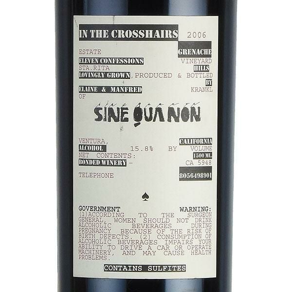 他の画像を見る 【パーカーポイント 100点】 シン クア ノン イン ザ クロスヘアーズ グルナッシュ 2006 マグナム 1500ml シネ クア ノン シンクアノン シネクアノン Sine Qua Non In The Crosshairs Grenache アメリカ カリフォルニア 赤ワイン 通常販売価格(税込) ¥ 473,000 税込 会員メンバー価格(税込) ¥ 368,000 税込 送料無料 クール便対応可能 カートに入れる お気に入りに追加