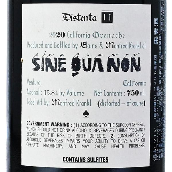 他の画像を見る 【パーカーポイント 97点】 シン クア ノン ディステンタ ツー グルナッシュ 2020 シネ クア ノン シンクアノン シネクアノン Sine Qua Non Distenta II Grenache アメリカ カリフォルニア 赤ワイン 通常販売価格(税込) ¥ 82,500 税込 会員メンバー価格(税込) ¥ 64,800 税込 送料無料 クール便対応可能 詳細を見る お気に入りに追加