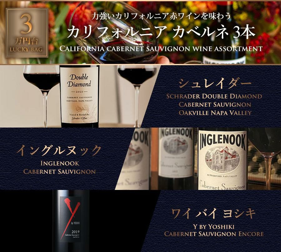他の画像を見る ワインセット カリフォルニア Schrader Double Diamond、Inglenook 他 《カベルネ・ソーヴィニヨン主体の力強いカリフォルニアワインを味わう》赤ワイン 厳選3本 福袋 送料無料 通常販売価格(税込) ¥ 39,600 税込 会員メンバー価格(税込) ¥ 33,800 税込 送料無料 詳細を見る お気に入りに追加